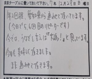 愛知県といえば「ひつまぶし」などの素晴らしい鰻文化がある土地ですが、そこから通ってくださるお気持ちに、これからも全力の「美味しい」でお応えしていきたいと思っております。