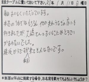 うなぎ大嶋 店主より