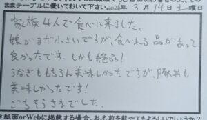 ​「絶品」という何よりの褒め言葉を励みに、これからも心を込めて焼き上げます。またぜひ、ご家族の皆様で賑やかにお越しください。お会いできる日を楽しみにお待ちしております。